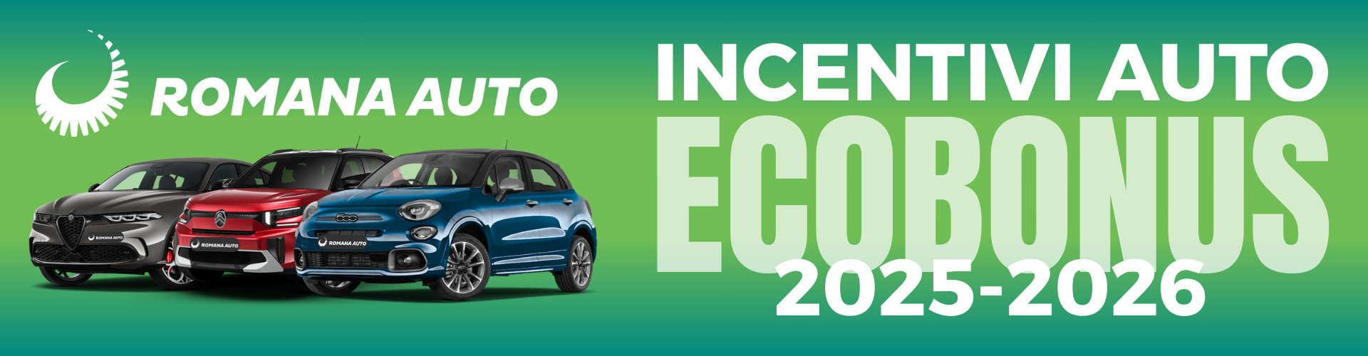 Gli Ecobonus 2025/2026 sono l’occasione ideale per passare a un’auto più moderna, sicura ed ecologica con un risparmio importante. Approfitta ora degli incentivi disponibili e blocca la promozioni di Romana Auto prima che i fondi finiscano.